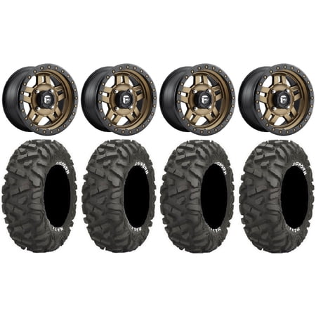 This Wheel and Tire Kit Includes: (4) Fuel Anza 14×7 ATV/UTV Wheels – Bronze (4/156) 4+3 [D5831470A544] (4) Maxxis BigHorn Radial (6ply) ATV Tires [28×10-14] (1) Gorilla 12mm x 1.25 Lug Kit & Valve Stems – Chrome [K4CS-12125GR] (4) Tires Mount on ATV/UTV Wheels These Wheels will fit the following machines: Kawasaki: Mule PRODX (2016-2022) Mule PRODXT (2016-2023) Mule PROFX (2016-2023) Mule PROFXR (2018-2023) Mule PROFXT (2015-2023) Mule PROMX (2019-2023) Yamaha: Wolverine RMAX2 1000 (2021-2023) Wolverine RMAX4 1000 (2021-2023) YXZ1000R (2019-2023) FITMENT NOTES: If you have any questions or concerns about fitment please contact us by email or phone BEFORE you order. This listing is for these machine models with a 4×156 Bolt Pattern and 12mmx1.25 Lug kit. Tire clearance varies by specific machine. Most machines can go at least 1 larger on the tire diameter. Fitment for other machines is available – Browse our wheel and tire kits for UTVs and ATVs. GENERAL NOTES: When you buy a set of 4 wheels OR 4 wheels & tires from us we include a Chrome Lug Kit at no additional charge ($32 Savings). Beware of other companies that do not include lug nuts & valve stems with their wheel sale some wheels require a special type of lug nut to fit into the wheel and your stock lug nuts may not work. If you wish to substitute the Chrome Lug Kit with a Black Lug Kit please contact us prior to ordering to verify availability and to ensure the change is made before the product has been packaged/shipped. We stock the majority of what we sell to ensure you get a great price and your order is shipped in a timely fashion. If you are interested in a mounted setup and don t see what you are looking for on our store please let us know. We can always package any tire we offer on any wheel we offer and they will come to your door mounted and ready to bolt on to your machine.