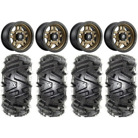 This Wheel and Tire Kit Includes: (4) Fuel Anza 14×7 ATV/UTV Wheels – Bronze (4/156) 4+3 [D5831470A544] (4) BKT Bogmax (6ply) ATV Tires [32×10-14] (1) Gorilla 12mm x 1.25 Lug Kit & Valve Stems – Chrome [K4CS-12125GR] (4) Tires Mount on ATV/UTV Wheels These Wheels will fit the following machines: Kawasaki: Mule PRODX (2016-2022) Mule PRODXT (2016-2023) Mule PROFX (2016-2023) Mule PROFXR (2018-2023) Mule PROFXT (2015-2023) Mule PROMX (2019-2023) Yamaha: Wolverine RMAX2 1000 (2021-2023) Wolverine RMAX4 1000 (2021-2023) YXZ1000R (2019-2023) FITMENT NOTES: If you have any questions or concerns about fitment please contact us by email or phone BEFORE you order. This listing is for these machine models with a 4×156 Bolt Pattern and 12mmx1.25 Lug kit. Tire clearance varies by specific machine. Most machines can go at least 1 larger on the tire diameter. Fitment for other machines is available – Browse our wheel and tire kits for UTVs and ATVs. GENERAL NOTES: When you buy a set of 4 wheels OR 4 wheels & tires from us we include a Chrome Lug Kit at no additional charge ($32 Savings). Beware of other companies that do not include lug nuts & valve stems with their wheel sale some wheels require a special type of lug nut to fit into the wheel and your stock lug nuts may not work. If you wish to substitute the Chrome Lug Kit with a Black Lug Kit please contact us prior to ordering to verify availability and to ensure the change is made before the product has been packaged/shipped. We stock the majority of what we sell to ensure you get a great price and your order is shipped in a timely fashion. If you are interested in a mounted setup and don t see what you are looking for on our store please let us know. We can always package any tire we offer on any wheel we offer and they will come to your door mounted and ready to bolt on to your machine.