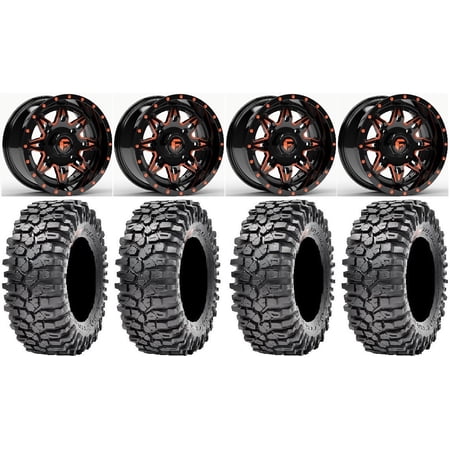 This Wheel and Tire Kit Includes: (4) Fuel Lethal 14×7 ATV/UTV Wheels – Gloss Black/Orange (4/156) 4+3 [D6551470A544] (4) Maxxis Roxxzilla 396 Radial (8ply) ATV Tires [32×10-14] (1) Gorilla 12mm x 1.25 Lug Kit & Valve Stems – Chrome [K4CS-12125GR] (4) Tires Mount on ATV/UTV Wheels These Wheels will fit the following machines: Kawasaki: Mule PRODX (2016-2022) Mule PRODXT (2016-2023) Mule PROFX (2016-2023) Mule PROFXR (2018-2023) Mule PROFXT (2015-2023) Mule PROMX (2019-2023) Yamaha: Wolverine RMAX2 1000 (2021-2023) Wolverine RMAX4 1000 (2021-2023) YXZ1000R (2019-2023) FITMENT NOTES: If you have any questions or concerns about fitment please contact us by email or phone BEFORE you order. This listing is for these machine models with a 4×156 Bolt Pattern and 12mmx1.25 Lug kit. Tire clearance varies by specific machine. Most machines can go at least 1 larger on the tire diameter. Fitment for other machines is available – Browse our wheel and tire kits for UTVs and ATVs. GENERAL NOTES: When you buy a set of 4 wheels OR 4 wheels & tires from us we include a Chrome Lug Kit at no additional charge ($32 Savings). Beware of other companies that do not include lug nuts & valve stems with their wheel sale some wheels require a special type of lug nut to fit into the wheel and your stock lug nuts may not work. If you wish to substitute the Chrome Lug Kit with a Black Lug Kit please contact us prior to ordering to verify availability and to ensure the change is made before the product has been packaged/shipped. We stock the majority of what we sell to ensure you get a great price and your order is shipped in a timely fashion. If you are interested in a mounted setup and don t see what you are looking for on our store please let us know. We can always package any tire we offer on any wheel we offer and they will come to your door mounted and ready to bolt on to your machine.