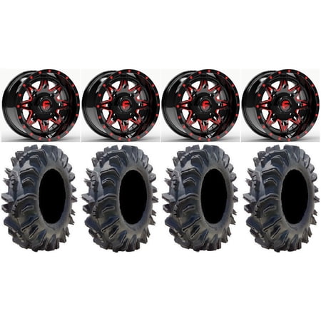 This Wheel and Tire Kit Includes: (4) Fuel Lethal 15×7 ATV/UTV Wheels – Gloss Black/Red (4/156) 4+3 [D6531570A544] (4) Super ATV Terminator (6ply) ATV Tires [34×10-15] (1) Gorilla 12mm x 1.5 Lug Kit & Valve Stems – Chrome [K4CS-12150GR] (4) Tires Mount on ATV/UTV Wheels These Wheels will fit the following machines: Arctic Cat/Textron: Wildcat XX (2020-2023) Wildcat XX (2018-2019) Polaris: General 1000 (2016-2023) General 4 1000 (2017-2022) General XP 1000 (2020-2023) General XP 4 1000 (2020-2023) Ranger Crew 900 (2013+) Ranger Crew 900-6 (2015-2016) Ranger Crew Diesel (2015+) Ranger Crew XP 1000 (2017-2023) Ranger Crew XP 570-6 (2016) Ranger Crew XP 900 (2017-2019) Ranger Crew XP 900-5 (2016) Ranger Crew XP 900-6 (2016) Ranger Diesel (2015+) Ranger Diesel HST (2014+) Ranger XP 1000 (2017-2023) Ranger XP 570 (2016) Ranger XP 900 (2013-2019) RZR 4 XP 1000 (2015) RZR Pro XP (2020-2023) RZR PRO XP 4 (2020-2023) RZR RS1 (2018-2022) RZR S 1000 (2015-2021) RZR S 900 (2015-2021) RZR Trail 900 (2021-2023) RZR Trail S 1000 (2021-2023) RZR Trail S 900 (2021-2023) RZR Turbo S (2021-2022) RZR Turbo S 4 (2021-2022) RZR XP (2015-2021) RZR XP 1000 (2014-2024) RZR XP 4 (2016-2021) RZR XP 4 1000 (2014-2024) RZR XP Turbo (2021) Scrambler XP 1000 (2020-2023) Sportsman XP 1000 (2020-2023) Note: Wheels with 6+1 offset will NOT fit on the Polaris Turbo S due to the larger brake caliper FITMENT NOTES: If you have any questions or concerns about fitment please contact us by email or phone BEFORE you order. This listing is for these machine models with a 4×156 Bolt Pattern and 12mmx1.5 Lug Kit. Tire clearance varies by specific machine. Most machines can go at least 1 larger on the tire diameter. Fitment for other machines is available – Browse our wheel and tire kits for UTVs and ATVs. GENERAL NOTES: When you buy a set of 4 wheels OR 4 wheels & tires from us we include a Chrome Lug Kit at no additional charge ($32 Savings). Beware of other companies that do not include lug nuts & valve stems with their wheel sale some wheels require a special type of lug nut to fit into the wheel and your stock lug nuts may not work. If you wish to substitute the Chrome Lug Kit with a Black Lug Kit please contact us prior to ordering to verify availability and to ensure the change is made before the product has