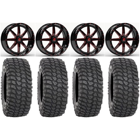 This Wheel and Tire Kit Includes: (4) Fuel Maverick 18×7 ATV/UTV Wheels – Gloss Black/Red (4/137) 4+3 [D6501870A644] (4) System 3 XCR350 (8ply) Radial ATV/UTV Tires [36×10-18] (1) Gorilla 12mm x 1.25 Lug Kit & Valve Stems – Chrome [K4CS-12125GR] (4) Tires Mount on ATV/UTV Wheels These Wheels will fit the following machines: Kawasaki: Mule 3000 (2001-2008) Mule 3010 (2001-2008) Mule 4000 (2009-2023) Mule 4000 Trans (2018-2021) Mule 4010 (2009-2023) Mule 4010 Trans (2015-2023) Teryx 750 (2008-2013) Teryx 800 (2015-2023) Teryx4 750 (2012-2013) Teryx4 800 (2014-2023) FITMENT NOTES: If you have any questions or concerns about fitment please contact us by email or phone BEFORE you order. This listing is for Kawaski models with a 4×137 Bolt Pattern and 12mmx1.25 Lug Kit. Tire clearance varies by specific machine. Most machines can go at least 1 larger on the tire diameter. Fitment for other machines is available – Browse our wheel and tire kits for UTVs and ATVs. GENERAL NOTES: When you buy a set of 4 wheels OR 4 wheels & tires from us we include a Chrome Lug Kit at no additional charge ($32 Savings). Beware of other companies that do not include lug nuts & valve stems with their wheel sale some wheels require a special type of lug nut to fit into the wheel and your stock lug nuts may not work. If you wish to substitute the Chrome Lug Kit with a Black Lug Kit please contact us prior to ordering to verify availability and to ensure the change is made before the product has been packaged/shipped. We stock the majority of what we sell to ensure you get a great price and your order is shipped in a timely fashion. If you are interested in a mounted setup and don t see what you are looking for on our store please let us know. We can always package any tire we offer on any wheel we offer and they will come to your door mounted and ready to bolt on to your machine.