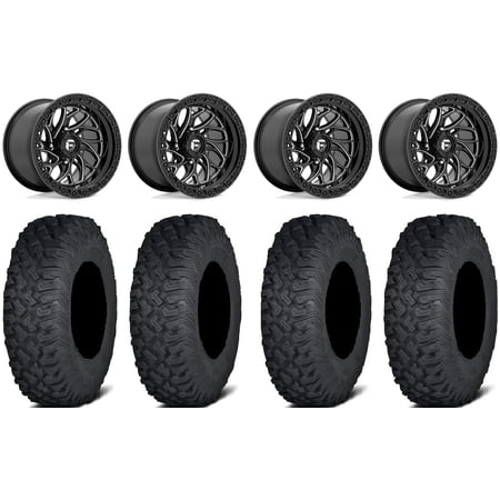 This Wheel and Tire Kit Includes: (4) Fuel Runner 15×7 ATV/UTV Wheels – Gloss Black/Milled (4/156) +10mm [D7411570A543] (4) ITP Coyote (8ply) Radial ATV Tires [33×10-15] (1) Gorilla 12mm x 1.5 Lug Kit & Valve Stems – Chrome [K4CS-12150GR] (4) Tires Mount on ATV/UTV Wheels These Wheels will fit the following machines: Arctic Cat/Textron: Wildcat XX (2020-2023) Wildcat XX (2018-2019) Polaris: General 1000 (2016-2023) General 4 1000 (2017-2022) General XP 1000 (2020-2023) General XP 4 1000 (2020-2023) Ranger Crew 900 (2013+) Ranger Crew 900-6 (2015-2016) Ranger Crew Diesel (2015+) Ranger Crew XP 1000 (2017-2023) Ranger Crew XP 570-6 (2016) Ranger Crew XP 900 (2017-2019) Ranger Crew XP 900-5 (2016) Ranger Crew XP 900-6 (2016) Ranger Diesel (2015+) Ranger Diesel HST (2014+) Ranger XP 1000 (2017-2023) Ranger XP 570 (2016) Ranger XP 900 (2013-2019) RZR 4 XP 1000 (2015) RZR Pro XP (2020-2023) RZR PRO XP 4 (2020-2023) RZR RS1 (2018-2022) RZR S 1000 (2015-2021) RZR S 900 (2015-2021) RZR Trail 900 (2021-2023) RZR Trail S 1000 (2021-2023) RZR Trail S 900 (2021-2023) RZR Turbo S (2021-2022) RZR Turbo S 4 (2021-2022) RZR XP (2015-2021) RZR XP 1000 (2014-2024) RZR XP 4 (2016-2021) RZR XP 4 1000 (2014-2024) RZR XP Turbo (2021) Scrambler XP 1000 (2020-2023) Sportsman XP 1000 (2020-2023) Note: Wheels with 6+1 offset will NOT fit on the Polaris Turbo S due to the larger brake caliper FITMENT NOTES: If you have any questions or concerns about fitment please contact us by email or phone BEFORE you order. This listing is for these machine models with a 4×156 Bolt Pattern and 12mmx1.5 Lug Kit. Tire clearance varies by specific machine. Most machines can go at least 1 larger on the tire diameter. Fitment for other machines is available – Browse our wheel and tire kits for UTVs and ATVs. GENERAL NOTES: When you buy a set of 4 wheels OR 4 wheels & tires from us we include a Chrome Lug Kit at no additional charge ($32 Savings). Beware of other companies that do not include lug nuts & valve stems with their wheel sale some wheels require a special type of lug nut to fit into the wheel and your stock lug nuts may not work. If you wish to substitute the Chrome Lug Kit with a Black Lug Kit please contact us prior to ordering to verify availability and to ensure the change is made before the product