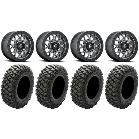 This Wheel and Tire Kit Includes: (4) Fuel Tech Beadlock 15×7 ATV/UTV Wheels – Gunmetal (4/156) 5+2 [D9191570A554] (4) Pro Armor Crawler XG (8ply) Radial ATV Tires [28×10-15] (1) Gorilla 12mm x 1.5 Lug Kit & Valve Stems – Chrome [K4CS-12150GR] (4) Tires Mount on ATV/UTV Beadlock Wheels These Wheels will fit the following machines: Arctic Cat/Textron: Wildcat XX (2020-2023) Wildcat XX (2018-2019) Polaris: General 1000 (2016-2023) General 4 1000 (2017-2022) General XP 1000 (2020-2023) General XP 4 1000 (2020-2023) Ranger Crew 900 (2013+) Ranger Crew 900-6 (2015-2016) Ranger Crew Diesel (2015+) Ranger Crew XP 1000 (2017-2023) Ranger Crew XP 570-6 (2016) Ranger Crew XP 900 (2017-2019) Ranger Crew XP 900-5 (2016) Ranger Crew XP 900-6 (2016) Ranger Diesel (2015+) Ranger Diesel HST (2014+) Ranger XP 1000 (2017-2023) Ranger XP 570 (2016) Ranger XP 900 (2013-2019) RZR 4 XP 1000 (2015) RZR Pro XP (2020-2023) RZR PRO XP 4 (2020-2023) RZR RS1 (2018-2022) RZR S 1000 (2015-2021) RZR S 900 (2015-2021) RZR Trail 900 (2021-2023) RZR Trail S 1000 (2021-2023) RZR Trail S 900 (2021-2023) RZR Turbo S (2021-2022) RZR Turbo S 4 (2021-2022) RZR XP (2015-2021) RZR XP 1000 (2014-2024) RZR XP 4 (2016-2021) RZR XP 4 1000 (2014-2024) RZR XP Turbo (2021) Scrambler XP 1000 (2020-2023) Sportsman XP 1000 (2020-2023) Note: Wheels with 6+1 offset will NOT fit on the Polaris Turbo S due to the larger brake caliper FITMENT NOTES: If you have any questions or concerns about fitment please contact us by email or phone BEFORE you order. This listing is for these machine models with a 4×156 Bolt Pattern and 12mmx1.5 Lug Kit. Tire clearance varies by specific machine. Most machines can go at least 1 larger on the tire diameter. Fitment for other machines is available – Browse our wheel and tire kits for UTVs and ATVs. GENERAL NOTES: When you buy a set of 4 wheels OR 4 wheels & tires from us we include a Chrome Lug Kit at no additional charge ($32 Savings). Beware of other companies that do not include lug nuts & valve stems with their wheel sale some wheels require a special type of lug nut to fit into the wheel and your stock lug nuts may not work. If you wish to substitute the Chrome Lug Kit with a Black Lug Kit please contact us prior to ordering to verify availability and to ensure the change is made before