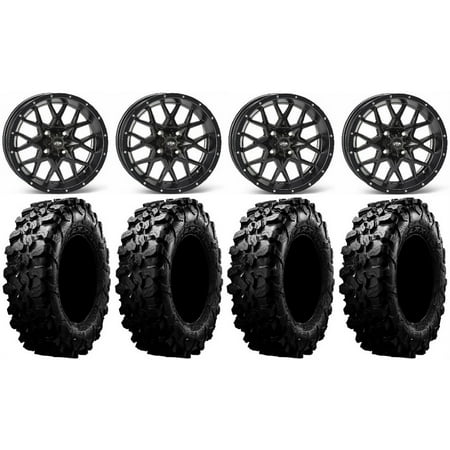 This Wheel and Tire Kit Includes: (4) ITP Hurricane Matte Black ATV Wheels Front/Rear 14×7 4/156 (4+3) [1428638536B] (4) Maxxis Carnivore Radial (8ply) ATV Tires [32×10-14] (1) Gorilla 12mm x 1.5 Lug Kit & Valve Stems – Chrome [K4CS-12150GR] (4) Tires Mount on ATV/UTV Wheels These Wheels will fit the following machines: Arctic Cat/Textron: Wildcat XX (2020-2023) Wildcat XX (2018-2019) Polaris: General 1000 (2016-2023) General 4 1000 (2017-2022) General XP 1000 (2020-2023) General XP 4 1000 (2020-2023) Ranger Crew 900 (2013+) Ranger Crew 900-6 (2015-2016) Ranger Crew Diesel (2015+) Ranger Crew XP 1000 (2017-2023) Ranger Crew XP 570-6 (2016) Ranger Crew XP 900 (2017-2019) Ranger Crew XP 900-5 (2016) Ranger Crew XP 900-6 (2016) Ranger Diesel (2015+) Ranger Diesel HST (2014+) Ranger XP 1000 (2017-2023) Ranger XP 570 (2016) Ranger XP 900 (2013-2019) RZR 4 XP 1000 (2015) RZR Pro XP (2020-2023) RZR PRO XP 4 (2020-2023) RZR RS1 (2018-2022) RZR S 1000 (2015-2021) RZR S 900 (2015-2021) RZR Trail 900 (2021-2023) RZR Trail S 1000 (2021-2023) RZR Trail S 900 (2021-2023) RZR Turbo S (2021-2022) RZR Turbo S 4 (2021-2022) RZR XP (2015-2021) RZR XP 1000 (2014-2024) RZR XP 4 (2016-2021) RZR XP 4 1000 (2014-2024) RZR XP Turbo (2021) Scrambler XP 1000 (2020-2023) Sportsman XP 1000 (2020-2023) Note: Wheels with 6+1 offset will NOT fit on the Polaris Turbo S due to the larger brake caliper FITMENT NOTES: If you have any questions or concerns about fitment please contact us by email or phone BEFORE you order. This listing is for these machine models with a 4×156 Bolt Pattern and 12mmx1.5 Lug Kit. Tire clearance varies by specific machine. Most machines can go at least 1 larger on the tire diameter. Fitment for other machines is available – Browse our wheel and tire kits for UTVs and ATVs. GENERAL NOTES: When you buy a set of 4 wheels OR 4 wheels & tires from us we include a Chrome Lug Kit at no additional charge ($32 Savings). Beware of other companies that do not include lug nuts & valve stems with their wheel sale some wheels require a special type of lug nut to fit into the wheel and your stock lug nuts may not work. If you wish to substitute the Chrome Lug Kit with a Black Lug Kit please contact us prior to ordering to verify availability and to ensure the change is made before the product