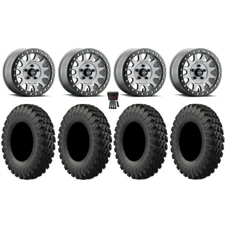 This Wheel and Tire Kit Includes: (4) KMC KS235 Grenade Beadlock 15×6 ATV/UTV Wheels – Satin Black (4/156) +38mm [KS23556044738] (4) System 3 XCR350 (8ply) Radial ATV/UTV Tires [32×10-15] (1) Gorilla 3/8 x 24 Lug Kit & Valve Stems – Chrome [K4CS-00038GR] (4) Tires Mount on ATV/UTV Beadlock Wheels These Wheels will fit the following machines: Polaris: ACE 500 (2017-2019) ACE 570 (2016-2019) ACE 900 (2016-2019) Ranger 400 (2010-2014) Ranger 500 (1998-2022) Ranger 570 (2014-2023) Ranger 700 (2006-2009) Ranger 800 (2010-2017) Ranger Crew 500 (2011-2013) Ranger Crew 570 (2014-2023) Ranger Crew 700 (2008-2009) Ranger Crew 800 (2010-2014) Ranger EV (2010-2022) Ranger XP 800 (2010-2013) RZR 4 800 (2010-2014) RZR 570 (2012-2022) RZR 800 (2008-2014) RZR S (2009) RZR S 800 (2009-2014) RZR XP 4 900 (2011-2014) RZR XP 900 (2011-2014) Sportsman 400 (1993-2014) Sportsman 450 (2006-2023) Sportsman 500 (1996-2013) Sportsman 570 (2014-2023) Sportsman ACE (2014-2015) Sportsman ACE 570 (2015) Sportsman X2 500 (2006-2009) Sportsman X2 570 (2015-2021) Sportsman X2 700 (2008) Sportsman X2 800 (2007-2009) FITMENT NOTES: If you have any questions or concerns about fitment please contact us by email or phone BEFORE you order. This listing is for Polaris models with a 4×156 Bolt Pattern and 3/8×24 Lug Kit. Tire clearance varies by specific machine. Most machines can go at least 1 larger on the tire diameter. Fitment for other machines is available – Browse our wheel and tire kits for UTVs and ATVs. GENERAL NOTES: When you buy a set of 4 wheels OR 4 wheels & tires from us we include a Chrome Lug Kit at no additional charge ($32 Savings). Beware of other companies that do not include lug nuts & valve stems with their wheel sale some wheels require a special type of lug nut to fit into the wheel and your stock lug nuts may not work. If you wish to substitute the Chrome Lug Kit with a Black Lug Kit please contact us prior to ordering to verify availability and to ensure the change is made before the product has been packaged/shipped. We stock the majority of what we sell to ensure you get a great price and your order is shipped in a timely fashion. If you are interested in a mounted setup and don t see what you are looking for on our store please let us know. We can always package any tire we offer on any wheel we offer and they will come to your door mounted and ready to bolt on to your machine.