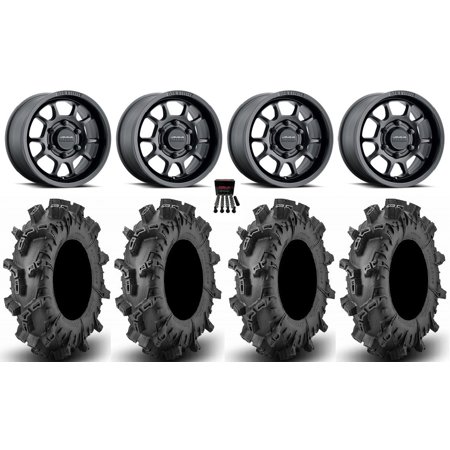 This Wheel and Tire Kit Includes: (4) KMC KS235 Grenade Beadlock 15×6 ATV/UTV Wheels – Satin Black (4/156) +38mm [KS23556044738] (4) Pro Armor Crawler XR (8ply) Radial ATV Tires [33×10-15] (1) Gorilla 12mm x 1.5 Lug Kit & Valve Stems – Chrome [K4CS-12150GR] (4) Tires Mount on ATV/UTV Beadlock Wheels These Wheels will fit the following machines: Arctic Cat/Textron: Wildcat XX (2020-2023) Wildcat XX (2018-2019) Polaris: General 1000 (2016-2023) General 4 1000 (2017-2022) General XP 1000 (2020-2023) General XP 4 1000 (2020-2023) Ranger Crew 900 (2013+) Ranger Crew 900-6 (2015-2016) Ranger Crew Diesel (2015+) Ranger Crew XP 1000 (2017-2023) Ranger Crew XP 570-6 (2016) Ranger Crew XP 900 (2017-2019) Ranger Crew XP 900-5 (2016) Ranger Crew XP 900-6 (2016) Ranger Diesel (2015+) Ranger Diesel HST (2014+) Ranger XP 1000 (2017-2023) Ranger XP 570 (2016) Ranger XP 900 (2013-2019) RZR 4 XP 1000 (2015) RZR Pro XP (2020-2023) RZR PRO XP 4 (2020-2023) RZR RS1 (2018-2022) RZR S 1000 (2015-2021) RZR S 900 (2015-2021) RZR Trail 900 (2021-2023) RZR Trail S 1000 (2021-2023) RZR Trail S 900 (2021-2023) RZR Turbo S (2021-2022) RZR Turbo S 4 (2021-2022) RZR XP (2015-2021) RZR XP 1000 (2014-2024) RZR XP 4 (2016-2021) RZR XP 4 1000 (2014-2024) RZR XP Turbo (2021) Scrambler XP 1000 (2020-2023) Sportsman XP 1000 (2020-2023) Note: Wheels with 6+1 offset will NOT fit on the Polaris Turbo S due to the larger brake caliper FITMENT NOTES: If you have any questions or concerns about fitment please contact us by email or phone BEFORE you order. This listing is for these machine models with a 4×156 Bolt Pattern and 12mmx1.5 Lug Kit. Tire clearance varies by specific machine. Most machines can go at least 1 larger on the tire diameter. Fitment for other machines is available – Browse our wheel and tire kits for UTVs and ATVs. GENERAL NOTES: When you buy a set of 4 wheels OR 4 wheels & tires from us we include a Chrome Lug Kit at no additional charge ($32 Savings). Beware of other companies that do not include lug nuts & valve stems with their wheel sale some wheels require a special type of lug nut to fit into the wheel and your stock lug nuts may not work. If you wish to substitute the Chrome Lug Kit with a Black Lug Kit please contact us prior to ordering to verify availability and to ensure the change