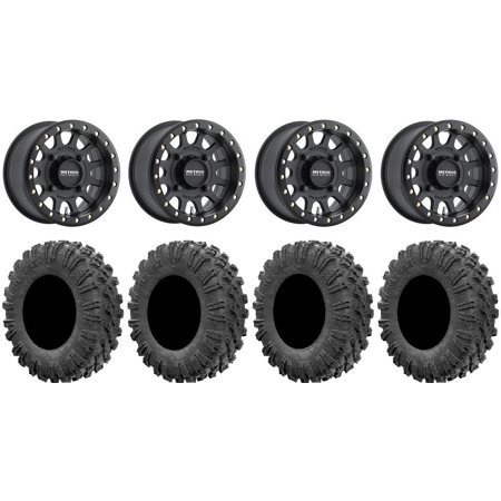 This Wheel and Tire Kit Includes: (4) Method 401 Beadlock Matte Black ATV/UTV Wheels 14×7 4/156 (5+2) [MR40147046552B] (4) EFX MotoRally (8ply) Radial ATV/UTV Tires [28×10-14] (1) Gorilla 12mm x 1.5 Lug Kit & Valve Stems – Chrome [K4CS-12150GR] (4) Tires Mount on ATV/UTV Beadlock Wheels These Wheels will fit the following machines: Arctic Cat/Textron: Wildcat XX (2020-2023) Wildcat XX (2018-2019) Polaris: General 1000 (2016-2023) General 4 1000 (2017-2022) General XP 1000 (2020-2023) General XP 4 1000 (2020-2023) Ranger Crew 900 (2013+) Ranger Crew 900-6 (2015-2016) Ranger Crew Diesel (2015+) Ranger Crew XP 1000 (2017-2023) Ranger Crew XP 570-6 (2016) Ranger Crew XP 900 (2017-2019) Ranger Crew XP 900-5 (2016) Ranger Crew XP 900-6 (2016) Ranger Diesel (2015+) Ranger Diesel HST (2014+) Ranger XP 1000 (2017-2023) Ranger XP 570 (2016) Ranger XP 900 (2013-2019) RZR 4 XP 1000 (2015) RZR Pro XP (2020-2023) RZR PRO XP 4 (2020-2023) RZR RS1 (2018-2022) RZR S 1000 (2015-2021) RZR S 900 (2015-2021) RZR Trail 900 (2021-2023) RZR Trail S 1000 (2021-2023) RZR Trail S 900 (2021-2023) RZR Turbo S (2021-2022) RZR Turbo S 4 (2021-2022) RZR XP (2015-2021) RZR XP 1000 (2014-2024) RZR XP 4 (2016-2021) RZR XP 4 1000 (2014-2024) RZR XP Turbo (2021) Scrambler XP 1000 (2020-2023) Sportsman XP 1000 (2020-2023) Note: Wheels with 6+1 offset will NOT fit on the Polaris Turbo S due to the larger brake caliper FITMENT NOTES: If you have any questions or concerns about fitment please contact us by email or phone BEFORE you order. This listing is for these machine models with a 4×156 Bolt Pattern and 12mmx1.5 Lug Kit. Tire clearance varies by specific machine. Most machines can go at least 1 larger on the tire diameter. Fitment for other machines is available – Browse our wheel and tire kits for UTVs and ATVs. GENERAL NOTES: When you buy a set of 4 wheels OR 4 wheels & tires from us we include a Chrome Lug Kit at no additional charge ($32 Savings). Beware of other companies that do not include lug nuts & valve stems with their wheel sale some wheels require a special type of lug nut to fit into the wheel and your stock lug nuts may not work. If you wish to substitute the Chrome Lug Kit with a Black Lug Kit please contact us prior to ordering to verify availability and to ensure the change is made before