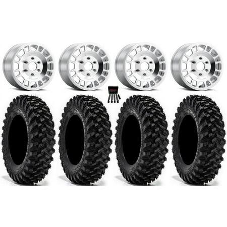 This Wheel and Tire Kit Includes: (4) Method 409 15×7 ATV/UTV Wheels – Steel Grey (4/156) 5+2 [MR40957046452] (4) Super ATV Intimidator (6ply) ATV Tires [34×10.5-15] (1) Gorilla 12mm x 1.25 Lug Kit & Valve Stems – Chrome [K4CS-12125GR] (4) Tires Mount on ATV/UTV Wheels These Wheels will fit the following machines: Kawasaki: Mule PRODX (2016-2022) Mule PRODXT (2016-2023) Mule PROFX (2016-2023) Mule PROFXR (2018-2023) Mule PROFXT (2015-2023) Mule PROMX (2019-2023) Yamaha: Wolverine RMAX2 1000 (2021-2023) Wolverine RMAX4 1000 (2021-2023) YXZ1000R (2019-2023) FITMENT NOTES: If you have any questions or concerns about fitment please contact us by email or phone BEFORE you order. This listing is for these machine models with a 4×156 Bolt Pattern and 12mmx1.25 Lug kit. Tire clearance varies by specific machine. Most machines can go at least 1 larger on the tire diameter. Fitment for other machines is available – Browse our wheel and tire kits for UTVs and ATVs. GENERAL NOTES: When you buy a set of 4 wheels OR 4 wheels & tires from us we include a Chrome Lug Kit at no additional charge ($32 Savings). Beware of other companies that do not include lug nuts & valve stems with their wheel sale some wheels require a special type of lug nut to fit into the wheel and your stock lug nuts may not work. If you wish to substitute the Chrome Lug Kit with a Black Lug Kit please contact us prior to ordering to verify availability and to ensure the change is made before the product has been packaged/shipped. We stock the majority of what we sell to ensure you get a great price and your order is shipped in a timely fashion. If you are interested in a mounted setup and don t see what you are looking for on our store please let us know. We can always package any tire we offer on any wheel we offer and they will come to your door mounted and ready to bolt on to your machine.