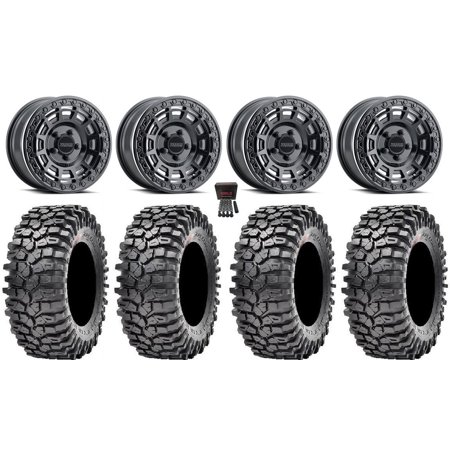 This Wheel and Tire Kit Includes: (4) Method 409 15×7 UTV Wheels – Matte Black 6×5.5 (5+2) [MR40957060552] (4) Obor RocScraper (8ply) Radial UTV Tires [37×10-15] (1) Gorilla 12mm x 1.5 6 Lug Kit & Valve Stems – Chrome [109317VS] (4) Tires Mount on ATV/UTV Wheels These Wheels will fit the following machines: Can-Am: Maverick R (2024) FITMENT NOTES: If you have any questions or concerns about fitment please contact us by email or phone BEFORE you order. This listing is for Polaris models with a 5×4.5 Bolt Pattern and 12mmx1.5 Lug Kit. Tire clearance varies by specific machine. Most machines can go at least 1 larger on the tire diameter. Fitment for other machines is available – Browse our wheel and tire kits for UTVs and ATVs. GENERAL NOTES: When you buy a set of 4 wheels OR 4 wheels & tires from us we include a Chrome Lug Kit at no additional charge ($32 Savings). Beware of other companies that do not include lug nuts & valve stems with their wheel sale some wheels require a special type of lug nut to fit into the wheel and your stock lug nuts may not work. If you wish to substitute the Chrome Lug Kit with a Black Lug Kit please contact us prior to ordering to verify availability and to ensure the change is made before the product has been packaged/shipped. We stock the majority of what we sell to ensure you get a great price and your order is shipped in a timely fashion. If you are interested in a mounted setup and don t see what you are looking for on our store please let us know. We can always package any tire we offer on any wheel we offer and they will come to your door mounted and ready to bolt on to your machine.