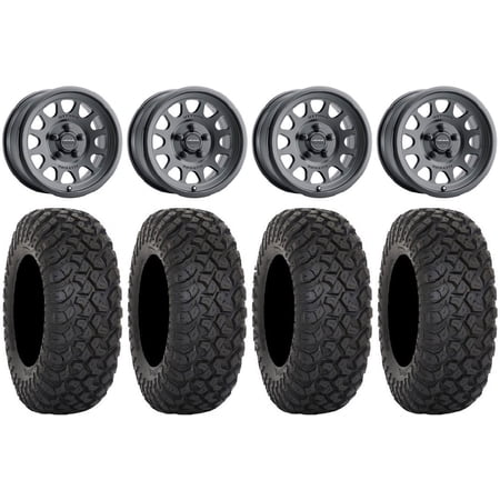 This Wheel and Tire Kit Includes: (4) Method 409 15×7 ATV/UTV Wheels – Steel Grey (4/156) 4+3 [MR40957046443] (4) System 3 ATX470 (10ply) Radial ATV/UTV Tires [33×10-15] (1) Gorilla 12mm x 1.5 Lug Kit & Valve Stems – Chrome [K4CS-12150GR] (4) Tires Mount on ATV/UTV Wheels These Wheels will fit the following machines: Arctic Cat/Textron: Wildcat XX (2020-2023) Wildcat XX (2018-2019) Polaris: General 1000 (2016-2023) General 4 1000 (2017-2022) General XP 1000 (2020-2023) General XP 4 1000 (2020-2023) Ranger Crew 900 (2013+) Ranger Crew 900-6 (2015-2016) Ranger Crew Diesel (2015+) Ranger Crew XP 1000 (2017-2023) Ranger Crew XP 570-6 (2016) Ranger Crew XP 900 (2017-2019) Ranger Crew XP 900-5 (2016) Ranger Crew XP 900-6 (2016) Ranger Diesel (2015+) Ranger Diesel HST (2014+) Ranger XP 1000 (2017-2023) Ranger XP 570 (2016) Ranger XP 900 (2013-2019) RZR 4 XP 1000 (2015) RZR Pro XP (2020-2023) RZR PRO XP 4 (2020-2023) RZR RS1 (2018-2022) RZR S 1000 (2015-2021) RZR S 900 (2015-2021) RZR Trail 900 (2021-2023) RZR Trail S 1000 (2021-2023) RZR Trail S 900 (2021-2023) RZR Turbo S (2021-2022) RZR Turbo S 4 (2021-2022) RZR XP (2015-2021) RZR XP 1000 (2014-2024) RZR XP 4 (2016-2021) RZR XP 4 1000 (2014-2024) RZR XP Turbo (2021) Scrambler XP 1000 (2020-2023) Sportsman XP 1000 (2020-2023) Note: Wheels with 6+1 offset will NOT fit on the Polaris Turbo S due to the larger brake caliper FITMENT NOTES: If you have any questions or concerns about fitment please contact us by email or phone BEFORE you order. This listing is for these machine models with a 4×156 Bolt Pattern and 12mmx1.5 Lug Kit. Tire clearance varies by specific machine. Most machines can go at least 1 larger on the tire diameter. Fitment for other machines is available – Browse our wheel and tire kits for UTVs and ATVs. GENERAL NOTES: When you buy a set of 4 wheels OR 4 wheels & tires from us we include a Chrome Lug Kit at no additional charge ($32 Savings). Beware of other companies that do not include lug nuts & valve stems with their wheel sale some wheels require a special type of lug nut to fit into the wheel and your stock lug nuts may not work. If you wish to substitute the Chrome Lug Kit with a Black Lug Kit please contact us prior to ordering to verify availability and to ensure the change is made before the product
