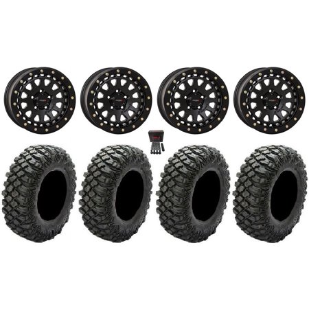 This Wheel and Tire Kit Includes: (4) Method 409 15×7 ATV/UTV Wheels – Steel Grey (4/156) 5+2 [MR40957046452] (4) Super ATV Warrior XT Sticky (8ply) ATV Tires [35×10-15] (1) Gorilla 12mm x 1.5 Lug Kit & Valve Stems – Chrome [K4CS-12150GR] (4) Tires Mount on ATV/UTV Wheels These Wheels will fit the following machines: Arctic Cat/Textron: Wildcat XX (2020-2023) Wildcat XX (2018-2019) Polaris: General 1000 (2016-2023) General 4 1000 (2017-2022) General XP 1000 (2020-2023) General XP 4 1000 (2020-2023) Ranger Crew 900 (2013+) Ranger Crew 900-6 (2015-2016) Ranger Crew Diesel (2015+) Ranger Crew XP 1000 (2017-2023) Ranger Crew XP 570-6 (2016) Ranger Crew XP 900 (2017-2019) Ranger Crew XP 900-5 (2016) Ranger Crew XP 900-6 (2016) Ranger Diesel (2015+) Ranger Diesel HST (2014+) Ranger XP 1000 (2017-2023) Ranger XP 570 (2016) Ranger XP 900 (2013-2019) RZR 4 XP 1000 (2015) RZR Pro XP (2020-2023) RZR PRO XP 4 (2020-2023) RZR RS1 (2018-2022) RZR S 1000 (2015-2021) RZR S 900 (2015-2021) RZR Trail 900 (2021-2023) RZR Trail S 1000 (2021-2023) RZR Trail S 900 (2021-2023) RZR Turbo S (2021-2022) RZR Turbo S 4 (2021-2022) RZR XP (2015-2021) RZR XP 1000 (2014-2024) RZR XP 4 (2016-2021) RZR XP 4 1000 (2014-2024) RZR XP Turbo (2021) Scrambler XP 1000 (2020-2023) Sportsman XP 1000 (2020-2023) Note: Wheels with 6+1 offset will NOT fit on the Polaris Turbo S due to the larger brake caliper FITMENT NOTES: If you have any questions or concerns about fitment please contact us by email or phone BEFORE you order. This listing is for these machine models with a 4×156 Bolt Pattern and 12mmx1.5 Lug Kit. Tire clearance varies by specific machine. Most machines can go at least 1 larger on the tire diameter. Fitment for other machines is available – Browse our wheel and tire kits for UTVs and ATVs. GENERAL NOTES: When you buy a set of 4 wheels OR 4 wheels & tires from us we include a Chrome Lug Kit at no additional charge ($32 Savings). Beware of other companies that do not include lug nuts & valve stems with their wheel sale some wheels require a special type of lug nut to fit into the wheel and your stock lug nuts may not work. If you wish to substitute the Chrome Lug Kit with a Black Lug Kit please contact us prior to ordering to verify availability and to ensure the change is made before the product