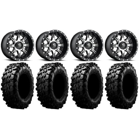 This Wheel and Tire Kit Includes: (4) Method 412 15×6 UTV Wheels – Machined 6×5.5 (5+1) [MR41256060351] (4) Maxxis Carnivore Radial (8ply) ATV Tires [32×10-15] (1) Gorilla 12mm x 1.5 6 Lug Kit & Valve Stems – Chrome [109317VS] (4) Tires Mount on ATV/UTV Wheels These Wheels will fit the following machines: Can-Am: Maverick R (2024) FITMENT NOTES: If you have any questions or concerns about fitment please contact us by email or phone BEFORE you order. This listing is for Polaris models with a 5×4.5 Bolt Pattern and 12mmx1.5 Lug Kit. Tire clearance varies by specific machine. Most machines can go at least 1 larger on the tire diameter. Fitment for other machines is available – Browse our wheel and tire kits for UTVs and ATVs. GENERAL NOTES: When you buy a set of 4 wheels OR 4 wheels & tires from us we include a Chrome Lug Kit at no additional charge ($32 Savings). Beware of other companies that do not include lug nuts & valve stems with their wheel sale some wheels require a special type of lug nut to fit into the wheel and your stock lug nuts may not work. If you wish to substitute the Chrome Lug Kit with a Black Lug Kit please contact us prior to ordering to verify availability and to ensure the change is made before the product has been packaged/shipped. We stock the majority of what we sell to ensure you get a great price and your order is shipped in a timely fashion. If you are interested in a mounted setup and don t see what you are looking for on our store please let us know. We can always package any tire we offer on any wheel we offer and they will come to your door mounted and ready to bolt on to your machine.