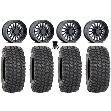 This Wheel and Tire Kit Includes: (4) MSA M43 Fang 15×7 ATV/UTV Wheels – Satin Black/Titanium Tint (4/137) +38mm [M43-385737] (4) Maxxis Carnivore Radial (8ply) ATV Tires [31×10-15] (1) Gorilla 12mm x 1.5 Lug Kit & Valve Stems – Chrome [K4CS-12150GR] (4) Tires Mount on ATV/UTV Wheels These Wheels will fit the following machines: Can-Am: Maverick X3 (2017-2023) Maverick X3 900 HO (2018) Maverick X3 Max (2018-2023) Maverick X3 Max R (2017-2021) Maverick X3 Max RR (2020-2023) Maverick X3 R (2017-2021) Maverick X3 RR (2020-2023) Note: On Maverick X3 you may have to remove or modify mud scraper to allow clearance for various 14 wheels. Honda: Pioneer 1000 (2016-2023) Pioneer 1000-5 (2016-2023) Talon 1000R (2019-2022) Talon 1000RS (2023) Talon 1000X (2019-2022) Talon 1000X-4 (2020-2022) Talon 1000XS (2023) Talon 1000XS-4 (2023) FITMENT NOTES: If you have any questions or concerns about fitment please contact us by email or phone BEFORE you order. This listing is for these machine models with a 4×137 Bolt Pattern and 12mmx1.5 Lug Kit. Tire clearance varies by specific machine. Most machines can go at least 1 larger on the tire diameter. Fitment for other machines is available – Browse our wheel and tire kits for UTVs and ATVs. GENERAL NOTES: When you buy a set of 4 wheels OR 4 wheels & tires from us we include a Chrome Lug Kit at no additional charge ($32 Savings). Beware of other companies that do not include lug nuts & valve stems with their wheel sale some wheels require a special type of lug nut to fit into the wheel and your stock lug nuts may not work. If you wish to substitute the Chrome Lug Kit with a Black Lug Kit please contact us prior to ordering to verify availability and to ensure the change is made before the product has been packaged/shipped. We stock the majority of what we sell to ensure you get a great price and your order is shipped in a timely fashion. If you are interested in a mounted setup and don t see what you are looking for on our store please let us know. We can always package any tire we offer on any wheel we offer and they will come to your door mounted and ready to bolt on to your machine.
