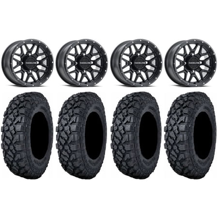 This Wheel and Tire Kit Includes: (4) MSA M21 Lok Beadlock ATV Wheels – Gunmetal [14×7] +0mm 4/156 [M21-04756] (4) Super ATV Assassinator (6ply) ATV Tires [34×8-14] (1) Gorilla 12mm x 1.5 Lug Kit & Valve Stems – Chrome [K4CS-12150GR] (4) Tires Mount on ATV/UTV Beadlock Wheels These Wheels will fit the following machines: Arctic Cat/Textron: Wildcat XX (2020-2023) Wildcat XX (2018-2019) Polaris: General 1000 (2016-2023) General 4 1000 (2017-2022) General XP 1000 (2020-2023) General XP 4 1000 (2020-2023) Ranger Crew 900 (2013+) Ranger Crew 900-6 (2015-2016) Ranger Crew Diesel (2015+) Ranger Crew XP 1000 (2017-2023) Ranger Crew XP 570-6 (2016) Ranger Crew XP 900 (2017-2019) Ranger Crew XP 900-5 (2016) Ranger Crew XP 900-6 (2016) Ranger Diesel (2015+) Ranger Diesel HST (2014+) Ranger XP 1000 (2017-2023) Ranger XP 570 (2016) Ranger XP 900 (2013-2019) RZR 4 XP 1000 (2015) RZR Pro XP (2020-2023) RZR PRO XP 4 (2020-2023) RZR RS1 (2018-2022) RZR S 1000 (2015-2021) RZR S 900 (2015-2021) RZR Trail 900 (2021-2023) RZR Trail S 1000 (2021-2023) RZR Trail S 900 (2021-2023) RZR Turbo S (2021-2022) RZR Turbo S 4 (2021-2022) RZR XP (2015-2021) RZR XP 1000 (2014-2024) RZR XP 4 (2016-2021) RZR XP 4 1000 (2014-2024) RZR XP Turbo (2021) Scrambler XP 1000 (2020-2023) Sportsman XP 1000 (2020-2023) Note: Wheels with 6+1 offset will NOT fit on the Polaris Turbo S due to the larger brake caliper FITMENT NOTES: If you have any questions or concerns about fitment please contact us by email or phone BEFORE you order. This listing is for these machine models with a 4×156 Bolt Pattern and 12mmx1.5 Lug Kit. Tire clearance varies by specific machine. Most machines can go at least 1 larger on the tire diameter. Fitment for other machines is available – Browse our wheel and tire kits for UTVs and ATVs. GENERAL NOTES: When you buy a set of 4 wheels OR 4 wheels & tires from us we include a Chrome Lug Kit at no additional charge ($32 Savings). Beware of other companies that do not include lug nuts & valve stems with their wheel sale some wheels require a special type of lug nut to fit into the wheel and your stock lug nuts may not work. If you wish to substitute the Chrome Lug Kit with a Black Lug Kit please contact us prior to ordering to verify availability and to ensure the change is made before the