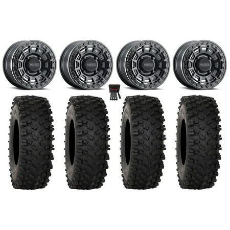 This Wheel and Tire Kit Includes: (4) Raceline Krank 14×7 ATV/UTV Wheels – Satin Black (4/156) +10mm [A94B-47056+10] (4) EFX MotoVator (8ply) Radial ATV Tires [28×9.5-14] (1) Gorilla 12mm x 1.25 Lug Kit & Valve Stems – Chrome [K4CS-12125GR] (4) Tires Mount on ATV/UTV Wheels These Wheels will fit the following machines: Kawasaki: Mule PRODX (2016-2022) Mule PRODXT (2016-2023) Mule PROFX (2016-2023) Mule PROFXR (2018-2023) Mule PROFXT (2015-2023) Mule PROMX (2019-2023) Yamaha: Wolverine RMAX2 1000 (2021-2023) Wolverine RMAX4 1000 (2021-2023) YXZ1000R (2019-2023) FITMENT NOTES: If you have any questions or concerns about fitment please contact us by email or phone BEFORE you order. This listing is for these machine models with a 4×156 Bolt Pattern and 12mmx1.25 Lug kit. Tire clearance varies by specific machine. Most machines can go at least 1 larger on the tire diameter. Fitment for other machines is available – Browse our wheel and tire kits for UTVs and ATVs. GENERAL NOTES: When you buy a set of 4 wheels OR 4 wheels & tires from us we include a Chrome Lug Kit at no additional charge ($32 Savings). Beware of other companies that do not include lug nuts & valve stems with their wheel sale some wheels require a special type of lug nut to fit into the wheel and your stock lug nuts may not work. If you wish to substitute the Chrome Lug Kit with a Black Lug Kit please contact us prior to ordering to verify availability and to ensure the change is made before the product has been packaged/shipped. We stock the majority of what we sell to ensure you get a great price and your order is shipped in a timely fashion. If you are interested in a mounted setup and don t see what you are looking for on our store please let us know. We can always package any tire we offer on any wheel we offer and they will come to your door mounted and ready to bolt on to your machine.