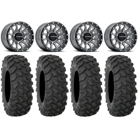 This Wheel and Tire Kit Includes: (4) Raceline Krank 15×7 ATV/UTV Wheels – Satin Black (4/156) +10mm [A94B-57056+10] (4) System 3 XC450 (10ply) Radial ATV/UTV Tires [32×10-15] (1) Gorilla 12mm x 1.25 Lug Kit & Valve Stems – Chrome [K4CS-12125GR] (4) Tires Mount on ATV/UTV Wheels These Wheels will fit the following machines: Kawasaki: Mule PRODX (2016-2022) Mule PRODXT (2016-2023) Mule PROFX (2016-2023) Mule PROFXR (2018-2023) Mule PROFXT (2015-2023) Mule PROMX (2019-2023) Yamaha: Wolverine RMAX2 1000 (2021-2023) Wolverine RMAX4 1000 (2021-2023) YXZ1000R (2019-2023) FITMENT NOTES: If you have any questions or concerns about fitment please contact us by email or phone BEFORE you order. This listing is for these machine models with a 4×156 Bolt Pattern and 12mmx1.25 Lug kit. Tire clearance varies by specific machine. Most machines can go at least 1 larger on the tire diameter. Fitment for other machines is available – Browse our wheel and tire kits for UTVs and ATVs. GENERAL NOTES: When you buy a set of 4 wheels OR 4 wheels & tires from us we include a Chrome Lug Kit at no additional charge ($32 Savings). Beware of other companies that do not include lug nuts & valve stems with their wheel sale some wheels require a special type of lug nut to fit into the wheel and your stock lug nuts may not work. If you wish to substitute the Chrome Lug Kit with a Black Lug Kit please contact us prior to ordering to verify availability and to ensure the change is made before the product has been packaged/shipped. We stock the majority of what we sell to ensure you get a great price and your order is shipped in a timely fashion. If you are interested in a mounted setup and don t see what you are looking for on our store please let us know. We can always package any tire we offer on any wheel we offer and they will come to your door mounted and ready to bolt on to your machine.