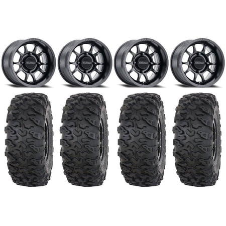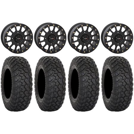 This Wheel and Tire Kit Includes: (4) Raceline Omega 14×7 ATV/UTV Wheels – Satin Black (4/156) +10mm [A13B-47056+10] (4) Super ATV Intimidator (6ply) ATV Tires [32×10-14] (1) Gorilla 12mm x 1.25 Lug Kit & Valve Stems – Chrome [K4CS-12125GR] (4) Tires Mount on ATV/UTV Wheels These Wheels will fit the following machines: Kawasaki: Mule PRODX (2016-2022) Mule PRODXT (2016-2023) Mule PROFX (2016-2023) Mule PROFXR (2018-2023) Mule PROFXT (2015-2023) Mule PROMX (2019-2023) Yamaha: Wolverine RMAX2 1000 (2021-2023) Wolverine RMAX4 1000 (2021-2023) YXZ1000R (2019-2023) FITMENT NOTES: If you have any questions or concerns about fitment please contact us by email or phone BEFORE you order. This listing is for these machine models with a 4×156 Bolt Pattern and 12mmx1.25 Lug kit. Tire clearance varies by specific machine. Most machines can go at least 1 larger on the tire diameter. Fitment for other machines is available – Browse our wheel and tire kits for UTVs and ATVs. GENERAL NOTES: When you buy a set of 4 wheels OR 4 wheels & tires from us we include a Chrome Lug Kit at no additional charge ($32 Savings). Beware of other companies that do not include lug nuts & valve stems with their wheel sale some wheels require a special type of lug nut to fit into the wheel and your stock lug nuts may not work. If you wish to substitute the Chrome Lug Kit with a Black Lug Kit please contact us prior to ordering to verify availability and to ensure the change is made before the product has been packaged/shipped. We stock the majority of what we sell to ensure you get a great price and your order is shipped in a timely fashion. If you are interested in a mounted setup and don t see what you are looking for on our store please let us know. We can always package any tire we offer on any wheel we offer and they will come to your door mounted and ready to bolt on to your machine.