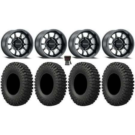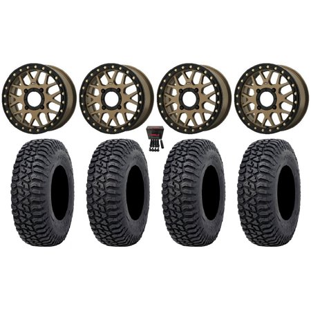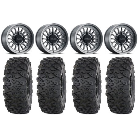 This Wheel and Tire Kit Includes: (4) Raceline Podium Beadlock 15×6 ATV/UTV Wheels – Stealth Grey (4/156) +40mm [A93SG-56056+40] (4) System 3 XCR350 (8ply) Radial ATV/UTV Tires [35×10-15] (1) Gorilla 12mm x 1.25 Lug Kit & Valve Stems – Chrome [K4CS-12125GR] (4) Tires Mount on ATV/UTV Beadlock Wheels These Wheels will fit the following machines: Kawasaki: Mule PRODX (2016-2022) Mule PRODXT (2016-2023) Mule PROFX (2016-2023) Mule PROFXR (2018-2023) Mule PROFXT (2015-2023) Mule PROMX (2019-2023) Yamaha: Wolverine RMAX2 1000 (2021-2023) Wolverine RMAX4 1000 (2021-2023) YXZ1000R (2019-2023) FITMENT NOTES: If you have any questions or concerns about fitment please contact us by email or phone BEFORE you order. This listing is for these machine models with a 4×156 Bolt Pattern and 12mmx1.25 Lug kit. Tire clearance varies by specific machine. Most machines can go at least 1 larger on the tire diameter. Fitment for other machines is available – Browse our wheel and tire kits for UTVs and ATVs. GENERAL NOTES: When you buy a set of 4 wheels OR 4 wheels & tires from us we include a Chrome Lug Kit at no additional charge ($32 Savings). Beware of other companies that do not include lug nuts & valve stems with their wheel sale some wheels require a special type of lug nut to fit into the wheel and your stock lug nuts may not work. If you wish to substitute the Chrome Lug Kit with a Black Lug Kit please contact us prior to ordering to verify availability and to ensure the change is made before the product has been packaged/shipped. We stock the majority of what we sell to ensure you get a great price and your order is shipped in a timely fashion. If you are interested in a mounted setup and don t see what you are looking for on our store please let us know. We can always package any tire we offer on any wheel we offer and they will come to your door mounted and ready to bolt on to your machine.