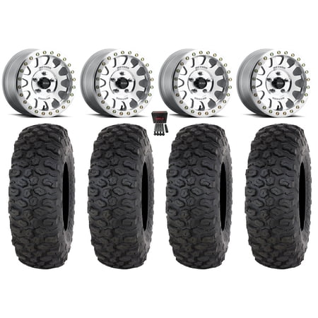 This Wheel and Tire Kit Includes: (4) Raceline Ryno Beadlock 15×7 ATV/UTV Wheels – Satin Black (4/156) +10mm [A91B-57056+10] (4) Pro Armor Crawler XR (8ply) Radial ATV Tires [33×10-15] (1) Gorilla 12mm x 1.25 Lug Kit & Valve Stems – Chrome [K4CS-12125GR] (4) Tires Mount on ATV/UTV Beadlock Wheels These Wheels will fit the following machines: Kawasaki: Mule PRODX (2016-2022) Mule PRODXT (2016-2023) Mule PROFX (2016-2023) Mule PROFXR (2018-2023) Mule PROFXT (2015-2023) Mule PROMX (2019-2023) RIDGE (2024-2025) RIDGE XR (2024-2025) Yamaha: Wolverine RMAX2 1000 (2021-2023) Wolverine RMAX4 1000 (2021-2023) YXZ1000R (2019-2023) FITMENT NOTES: If you have any questions or concerns about fitment please contact us by email or phone BEFORE you order. This listing is for these machine models with a 4×156 Bolt Pattern and 12mmx1.25 Lug kit. Tire clearance varies by specific machine. Most machines can go at least 1 larger on the tire diameter. Fitment for other machines is available – Browse our wheel and tire kits for UTVs and ATVs. GENERAL NOTES: When you buy a set of 4 wheels OR 4 wheels & tires from us we include a Chrome Lug Kit at no additional charge ($32 Savings). Beware of other companies that do not include lug nuts & valve stems with their wheel sale some wheels require a special type of lug nut to fit into the wheel and your stock lug nuts may not work. If you wish to substitute the Chrome Lug Kit with a Black Lug Kit please contact us prior to ordering to verify availability and to ensure the change is made before the product has been packaged/shipped. We stock the majority of what we sell to ensure you get a great price and your order is shipped in a timely fashion. If you are interested in a mounted setup and don t see what you are looking for on our store please let us know. We can always package any tire we offer on any wheel we offer and they will come to your door mounted and ready to bolt on to your machine.