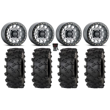 This Wheel and Tire Kit Includes: (4) Sedona Rukus 14×7 ATV/UTV Wheels – Satin Black 4/156 +5mm [A83B-GY-47056-43S] (4) EFX Moto MTC (6ply) ATV Tires [27×10-14] (1) Gorilla 12mm x 1.5 Lug Kit & Valve Stems – Chrome [K4CS-12150GR] (4) Tires Mount on ATV/UTV Wheels These Wheels will fit the following machines: Arctic Cat/Textron: Wildcat XX (2020-2023) Wildcat XX (2018-2019) Polaris: General 1000 (2016-2023) General 4 1000 (2017-2022) General XP 1000 (2020-2023) General XP 4 1000 (2020-2023) Ranger Crew 900 (2013+) Ranger Crew 900-6 (2015-2016) Ranger Crew Diesel (2015+) Ranger Crew XP 1000 (2017-2023) Ranger Crew XP 570-6 (2016) Ranger Crew XP 900 (2017-2019) Ranger Crew XP 900-5 (2016) Ranger Crew XP 900-6 (2016) Ranger Diesel (2015+) Ranger Diesel HST (2014+) Ranger XP 1000 (2017-2023) Ranger XP 570 (2016) Ranger XP 900 (2013-2019) RZR 4 XP 1000 (2015) RZR Pro XP (2020-2023) RZR PRO XP 4 (2020-2023) RZR RS1 (2018-2022) RZR S 1000 (2015-2021) RZR S 900 (2015-2021) RZR Trail 900 (2021-2023) RZR Trail S 1000 (2021-2023) RZR Trail S 900 (2021-2023) RZR Turbo S (2021-2022) RZR Turbo S 4 (2021-2022) RZR XP (2015-2021) RZR XP 1000 (2014-2024) RZR XP 4 (2016-2021) RZR XP 4 1000 (2014-2024) RZR XP Turbo (2021) Scrambler XP 1000 (2020-2023) Sportsman XP 1000 (2020-2023) Note: Wheels with 6+1 offset will NOT fit on the Polaris Turbo S due to the larger brake caliper FITMENT NOTES: If you have any questions or concerns about fitment please contact us by email or phone BEFORE you order. This listing is for these machine models with a 4×156 Bolt Pattern and 12mmx1.5 Lug Kit. Tire clearance varies by specific machine. Most machines can go at least 1 larger on the tire diameter. Fitment for other machines is available – Browse our wheel and tire kits for UTVs and ATVs. GENERAL NOTES: When you buy a set of 4 wheels OR 4 wheels & tires from us we include a Chrome Lug Kit at no additional charge ($32 Savings). Beware of other companies that do not include lug nuts & valve stems with their wheel sale some wheels require a special type of lug nut to fit into the wheel and your stock lug nuts may not work. If you wish to substitute the Chrome Lug Kit with a Black Lug Kit please contact us prior to ordering to verify availability and to ensure the change is made before the product has been