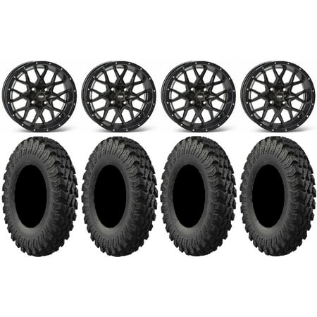 This Wheel and Tire Kit Includes: (4) Sedona Rukus 14×7 ATV/UTV Wheels – Satin Black 4/156 +30mm [A83B-GY-47056-61S] (4) Super ATV Assassinator (6ply) ATV Tires [29.5×8-14] (1) Gorilla 3/8 x 24 Lug Kit & Valve Stems – Chrome [K4CS-00038GR] (4) Tires Mount on ATV/UTV Wheels These Wheels will fit the following machines: Polaris: ACE 500 (2017-2019) ACE 570 (2016-2019) ACE 900 (2016-2019) Ranger 400 (2010-2014) Ranger 500 (1998-2022) Ranger 570 (2014-2023) Ranger 700 (2006-2009) Ranger 800 (2010-2017) Ranger Crew 500 (2011-2013) Ranger Crew 570 (2014-2023) Ranger Crew 700 (2008-2009) Ranger Crew 800 (2010-2014) Ranger EV (2010-2022) Ranger XP 800 (2010-2013) RZR 4 800 (2010-2014) RZR 570 (2012-2022) RZR 800 (2008-2014) RZR S (2009) RZR S 800 (2009-2014) RZR XP 4 900 (2011-2014) RZR XP 900 (2011-2014) Sportsman 400 (1993-2014) Sportsman 450 (2006-2023) Sportsman 500 (1996-2013) Sportsman 570 (2014-2023) Sportsman ACE (2014-2015) Sportsman ACE 570 (2015) Sportsman X2 500 (2006-2009) Sportsman X2 570 (2015-2021) Sportsman X2 700 (2008) Sportsman X2 800 (2007-2009) FITMENT NOTES: If you have any questions or concerns about fitment please contact us by email or phone BEFORE you order. This listing is for Polaris models with a 4×156 Bolt Pattern and 3/8×24 Lug Kit. Tire clearance varies by specific machine. Most machines can go at least 1 larger on the tire diameter. Fitment for other machines is available – Browse our wheel and tire kits for UTVs and ATVs. GENERAL NOTES: When you buy a set of 4 wheels OR 4 wheels & tires from us we include a Chrome Lug Kit at no additional charge ($32 Savings). Beware of other companies that do not include lug nuts & valve stems with their wheel sale some wheels require a special type of lug nut to fit into the wheel and your stock lug nuts may not work. If you wish to substitute the Chrome Lug Kit with a Black Lug Kit please contact us prior to ordering to verify availability and to ensure the change is made before the product has been packaged/shipped. We stock the majority of what we sell to ensure you get a great price and your order is shipped in a timely fashion. If you are interested in a mounted setup and don t see what you are looking for on our store please let us know. We can always package any tire we offer on any wheel we offer and they will come to your door mounted and ready to bolt on to your machine.