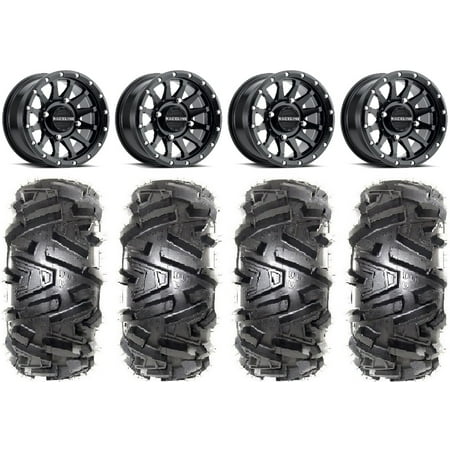 This Wheel and Tire Kit Includes: (4) Sedona Rukus 14×7 ATV/UTV Wheels – Satin Black 4/156 +30mm [A83B-GY-47056-61S] (4) EFX Moto MTC (6ply) ATV Tires [28×10-14] (1) Gorilla 12mm x 1.25 Lug Kit & Valve Stems – Chrome [K4CS-12125GR] (4) Tires Mount on ATV/UTV Wheels These Wheels will fit the following machines: Kawasaki: Mule PRODX (2016-2022) Mule PRODXT (2016-2023) Mule PROFX (2016-2023) Mule PROFXR (2018-2023) Mule PROFXT (2015-2023) Mule PROMX (2019-2023) Yamaha: Wolverine RMAX2 1000 (2021-2023) Wolverine RMAX4 1000 (2021-2023) YXZ1000R (2019-2023) FITMENT NOTES: If you have any questions or concerns about fitment please contact us by email or phone BEFORE you order. This listing is for these machine models with a 4×156 Bolt Pattern and 12mmx1.25 Lug kit. Tire clearance varies by specific machine. Most machines can go at least 1 larger on the tire diameter. Fitment for other machines is available – Browse our wheel and tire kits for UTVs and ATVs. GENERAL NOTES: When you buy a set of 4 wheels OR 4 wheels & tires from us we include a Chrome Lug Kit at no additional charge ($32 Savings). Beware of other companies that do not include lug nuts & valve stems with their wheel sale some wheels require a special type of lug nut to fit into the wheel and your stock lug nuts may not work. If you wish to substitute the Chrome Lug Kit with a Black Lug Kit please contact us prior to ordering to verify availability and to ensure the change is made before the product has been packaged/shipped. We stock the majority of what we sell to ensure you get a great price and your order is shipped in a timely fashion. If you are interested in a mounted setup and don t see what you are looking for on our store please let us know. We can always package any tire we offer on any wheel we offer and they will come to your door mounted and ready to bolt on to your machine.