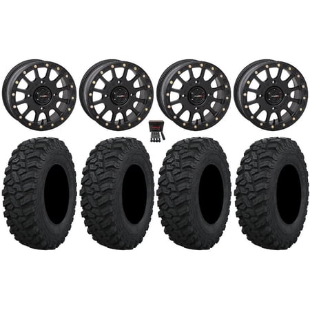 This Wheel and Tire Kit Includes: (4) System 3 SB-4 Beadlock 15×7 ATV/UTV Wheels – Matte Black (4/156) 6+1 [15S3-3156] (4) Pro Armor Crawler XR (8ply) Radial ATV Tires [33×10-15] (1) Gorilla 12mm x 1.5 Lug Kit & Valve Stems – Chrome [K4CS-12150GR] (4) Tires Mount on ATV/UTV Beadlock Wheels These Wheels will fit the following machines: Arctic Cat/Textron: Wildcat XX (2020-2023) Wildcat XX (2018-2019) Polaris: General 1000 (2016-2023) General 4 1000 (2017-2022) General XP 1000 (2020-2023) General XP 4 1000 (2020-2023) Ranger Crew 900 (2013+) Ranger Crew 900-6 (2015-2016) Ranger Crew Diesel (2015+) Ranger Crew XP 1000 (2017-2023) Ranger Crew XP 570-6 (2016) Ranger Crew XP 900 (2017-2019) Ranger Crew XP 900-5 (2016) Ranger Crew XP 900-6 (2016) Ranger Diesel (2015+) Ranger Diesel HST (2014+) Ranger XP 1000 (2017-2023) Ranger XP 570 (2016) Ranger XP 900 (2013-2019) RZR 4 XP 1000 (2015) RZR Pro XP (2020-2023) RZR PRO XP 4 (2020-2023) RZR RS1 (2018-2022) RZR S 1000 (2015-2021) RZR S 900 (2015-2021) RZR Trail 900 (2021-2023) RZR Trail S 1000 (2021-2023) RZR Trail S 900 (2021-2023) RZR Turbo S (2021-2022) RZR Turbo S 4 (2021-2022) RZR XP (2015-2021) RZR XP 1000 (2014-2024) RZR XP 4 (2016-2021) RZR XP 4 1000 (2014-2024) RZR XP Turbo (2021) Scrambler XP 1000 (2020-2023) Sportsman XP 1000 (2020-2023) Note: Wheels with 6+1 offset will NOT fit on the Polaris Turbo S due to the larger brake caliper FITMENT NOTES: If you have any questions or concerns about fitment please contact us by email or phone BEFORE you order. This listing is for these machine models with a 4×156 Bolt Pattern and 12mmx1.5 Lug Kit. Tire clearance varies by specific machine. Most machines can go at least 1 larger on the tire diameter. Fitment for other machines is available – Browse our wheel and tire kits for UTVs and ATVs. GENERAL NOTES: When you buy a set of 4 wheels OR 4 wheels & tires from us we include a Chrome Lug Kit at no additional charge ($32 Savings). Beware of other companies that do not include lug nuts & valve stems with their wheel sale some wheels require a special type of lug nut to fit into the wheel and your stock lug nuts may not work. If you wish to substitute the Chrome Lug Kit with a Black Lug Kit please contact us prior to ordering to verify availability and to ensure the change is made