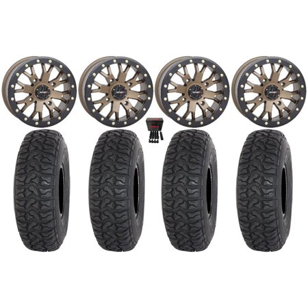 This Wheel and Tire Kit Includes: (4) System 3 SB-4 Beadlock 15×7 ATV/UTV Wheels – Bronze (4/156) 6+1 [15S3-3256] (4) Maxxis Carnivore Radial (8ply) ATV Tires [32×10-15] (1) Gorilla 3/8 x 24 Lug Kit & Valve Stems – Chrome [K4CS-00038GR] (4) Tires Mount on ATV/UTV Beadlock Wheels These Wheels will fit the following machines: Polaris: ACE 500 (2017-2019) ACE 570 (2016-2019) ACE 900 (2016-2019) Ranger 400 (2010-2014) Ranger 500 (1998-2022) Ranger 570 (2014-2023) Ranger 700 (2006-2009) Ranger 800 (2010-2017) Ranger Crew 500 (2011-2013) Ranger Crew 570 (2014-2023) Ranger Crew 700 (2008-2009) Ranger Crew 800 (2010-2014) Ranger EV (2010-2022) Ranger XP 800 (2010-2013) RZR 4 800 (2010-2014) RZR 570 (2012-2022) RZR 800 (2008-2014) RZR S (2009) RZR S 800 (2009-2014) RZR XP 4 900 (2011-2014) RZR XP 900 (2011-2014) Sportsman 400 (1993-2014) Sportsman 450 (2006-2023) Sportsman 500 (1996-2013) Sportsman 570 (2014-2023) Sportsman ACE (2014-2015) Sportsman ACE 570 (2015) Sportsman X2 500 (2006-2009) Sportsman X2 570 (2015-2021) Sportsman X2 700 (2008) Sportsman X2 800 (2007-2009) FITMENT NOTES: If you have any questions or concerns about fitment please contact us by email or phone BEFORE you order. This listing is for Polaris models with a 4×156 Bolt Pattern and 3/8×24 Lug Kit. Tire clearance varies by specific machine. Most machines can go at least 1 larger on the tire diameter. Fitment for other machines is available – Browse our wheel and tire kits for UTVs and ATVs. GENERAL NOTES: When you buy a set of 4 wheels OR 4 wheels & tires from us we include a Chrome Lug Kit at no additional charge ($32 Savings). Beware of other companies that do not include lug nuts & valve stems with their wheel sale some wheels require a special type of lug nut to fit into the wheel and your stock lug nuts may not work. If you wish to substitute the Chrome Lug Kit with a Black Lug Kit please contact us prior to ordering to verify availability and to ensure the change is made before the product has been packaged/shipped. We stock the majority of what we sell to ensure you get a great price and your order is shipped in a timely fashion. If you are interested in a mounted setup and don t see what you are looking for on our store please let us know. We can always package any tire we offer on any wheel we offer and they will come to your door mounted and ready to bolt on to your machine.