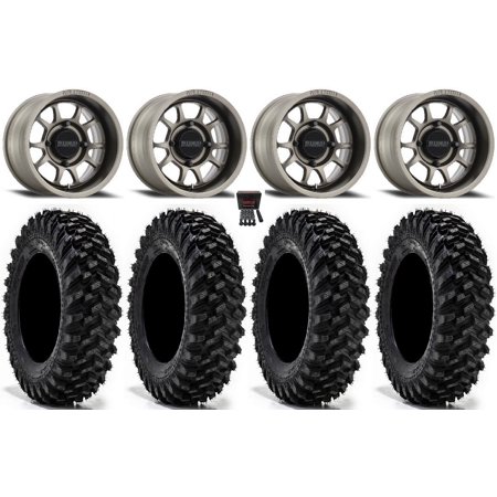 This Wheel and Tire Kit Includes: (4) System 3 SB-5 Beadlock 15×7 ATV/UTV Wheels – Matte Black (4/156) 5+2 [15S3-5556] (4) Super ATV Intimidator (6ply) ATV Tires [34×10.5-15] (1) Gorilla 12mm x 1.25 Lug Kit & Valve Stems – Chrome [K4CS-12125GR] (4) Tires Mount on ATV/UTV Beadlock Wheels These Wheels will fit the following machines: Kawasaki: Mule PRODX (2016-2022) Mule PRODXT (2016-2023) Mule PROFX (2016-2023) Mule PROFXR (2018-2023) Mule PROFXT (2015-2023) Mule PROMX (2019-2023) Yamaha: Wolverine RMAX2 1000 (2021-2023) Wolverine RMAX4 1000 (2021-2023) YXZ1000R (2019-2023) FITMENT NOTES: If you have any questions or concerns about fitment please contact us by email or phone BEFORE you order. This listing is for these machine models with a 4×156 Bolt Pattern and 12mmx1.25 Lug kit. Tire clearance varies by specific machine. Most machines can go at least 1 larger on the tire diameter. Fitment for other machines is available – Browse our wheel and tire kits for UTVs and ATVs. GENERAL NOTES: When you buy a set of 4 wheels OR 4 wheels & tires from us we include a Chrome Lug Kit at no additional charge ($32 Savings). Beware of other companies that do not include lug nuts & valve stems with their wheel sale some wheels require a special type of lug nut to fit into the wheel and your stock lug nuts may not work. If you wish to substitute the Chrome Lug Kit with a Black Lug Kit please contact us prior to ordering to verify availability and to ensure the change is made before the product has been packaged/shipped. We stock the majority of what we sell to ensure you get a great price and your order is shipped in a timely fashion. If you are interested in a mounted setup and don t see what you are looking for on our store please let us know. We can always package any tire we offer on any wheel we offer and they will come to your door mounted and ready to bolt on to your machine.