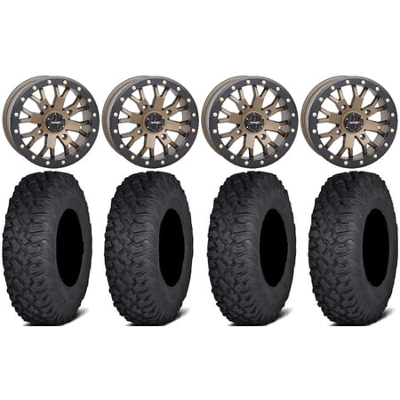 This Wheel and Tire Kit Includes: (4) System 3 SB-5 Beadlock 14×7 ATV/UTV Wheels – Gunmetal (4/156) 5+2 [14S3-5656] (4) Pro Armor Crawler XR (8ply) Radial ATV Tires [28×10-14] (1) Gorilla 12mm x 1.5 Lug Kit & Valve Stems – Chrome [K4CS-12150GR] (4) Tires Mount on ATV/UTV Beadlock Wheels These Wheels will fit the following machines: Arctic Cat/Textron: Wildcat XX (2020-2023) Wildcat XX (2018-2019) Polaris: General 1000 (2016-2023) General 4 1000 (2017-2022) General XP 1000 (2020-2023) General XP 4 1000 (2020-2023) Ranger Crew 900 (2013+) Ranger Crew 900-6 (2015-2016) Ranger Crew Diesel (2015+) Ranger Crew XP 1000 (2017-2023) Ranger Crew XP 570-6 (2016) Ranger Crew XP 900 (2017-2019) Ranger Crew XP 900-5 (2016) Ranger Crew XP 900-6 (2016) Ranger Diesel (2015+) Ranger Diesel HST (2014+) Ranger XP 1000 (2017-2023) Ranger XP 570 (2016) Ranger XP 900 (2013-2019) RZR 4 XP 1000 (2015) RZR Pro XP (2020-2023) RZR PRO XP 4 (2020-2023) RZR RS1 (2018-2022) RZR S 1000 (2015-2021) RZR S 900 (2015-2021) RZR Trail 900 (2021-2023) RZR Trail S 1000 (2021-2023) RZR Trail S 900 (2021-2023) RZR Turbo S (2021-2022) RZR Turbo S 4 (2021-2022) RZR XP (2015-2021) RZR XP 1000 (2014-2024) RZR XP 4 (2016-2021) RZR XP 4 1000 (2014-2024) RZR XP Turbo (2021) Scrambler XP 1000 (2020-2023) Sportsman XP 1000 (2020-2023) Note: Wheels with 6+1 offset will NOT fit on the Polaris Turbo S due to the larger brake caliper FITMENT NOTES: If you have any questions or concerns about fitment please contact us by email or phone BEFORE you order. This listing is for these machine models with a 4×156 Bolt Pattern and 12mmx1.5 Lug Kit. Tire clearance varies by specific machine. Most machines can go at least 1 larger on the tire diameter. Fitment for other machines is available – Browse our wheel and tire kits for UTVs and ATVs. GENERAL NOTES: When you buy a set of 4 wheels OR 4 wheels & tires from us we include a Chrome Lug Kit at no additional charge ($32 Savings). Beware of other companies that do not include lug nuts & valve stems with their wheel sale some wheels require a special type of lug nut to fit into the wheel and your stock lug nuts may not work. If you wish to substitute the Chrome Lug Kit with a Black Lug Kit please contact us prior to ordering to verify availability and to ensure the change is made before