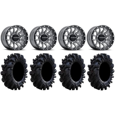 This Wheel and Tire Kit Includes: (4) System 3 ST-3 14×7 ATV/UTV Wheels – Machined (4/156) 5+2 [14S3-1056] (4) Super ATV Intimidator (6ply) ATV Tires [30×10-14] (1) Gorilla 12mm x 1.25 Lug Kit & Valve Stems – Chrome [K4CS-12125GR] (4) Tires Mount on ATV/UTV Wheels These Wheels will fit the following machines: Kawasaki: Mule PRODX (2016-2022) Mule PRODXT (2016-2023) Mule PROFX (2016-2023) Mule PROFXR (2018-2023) Mule PROFXT (2015-2023) Mule PROMX (2019-2023) Yamaha: Wolverine RMAX2 1000 (2021-2023) Wolverine RMAX4 1000 (2021-2023) YXZ1000R (2019-2023) FITMENT NOTES: If you have any questions or concerns about fitment please contact us by email or phone BEFORE you order. This listing is for these machine models with a 4×156 Bolt Pattern and 12mmx1.25 Lug kit. Tire clearance varies by specific machine. Most machines can go at least 1 larger on the tire diameter. Fitment for other machines is available – Browse our wheel and tire kits for UTVs and ATVs. GENERAL NOTES: When you buy a set of 4 wheels OR 4 wheels & tires from us we include a Chrome Lug Kit at no additional charge ($32 Savings). Beware of other companies that do not include lug nuts & valve stems with their wheel sale some wheels require a special type of lug nut to fit into the wheel and your stock lug nuts may not work. If you wish to substitute the Chrome Lug Kit with a Black Lug Kit please contact us prior to ordering to verify availability and to ensure the change is made before the product has been packaged/shipped. We stock the majority of what we sell to ensure you get a great price and your order is shipped in a timely fashion. If you are interested in a mounted setup and don t see what you are looking for on our store please let us know. We can always package any tire we offer on any wheel we offer and they will come to your door mounted and ready to bolt on to your machine.