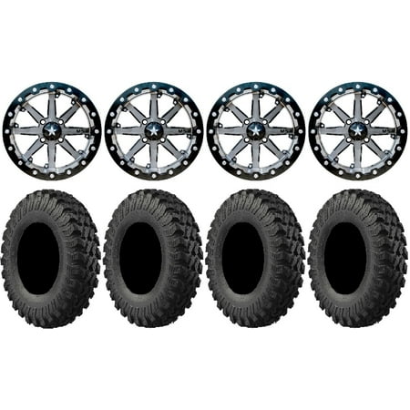This Wheel and Tire Kit Includes: (4) System 3 ST-4 14×7 ATV/UTV Wheels – Gloss Black (4/156) 4+3 [14S3-4156] (4) EFX MotoClaw (8ply) Radial ATV Tires [27×10-14] (1) Gorilla 12mm x 1.5 Lug Kit & Valve Stems – Chrome [K4CS-12150GR] (4) Tires Mount on ATV/UTV Wheels These Wheels will fit the following machines: Arctic Cat/Textron: Wildcat XX (2020-2023) Wildcat XX (2018-2019) Polaris: General 1000 (2016-2023) General 4 1000 (2017-2022) General XP 1000 (2020-2023) General XP 4 1000 (2020-2023) Ranger Crew 900 (2013+) Ranger Crew 900-6 (2015-2016) Ranger Crew Diesel (2015+) Ranger Crew XP 1000 (2017-2023) Ranger Crew XP 570-6 (2016) Ranger Crew XP 900 (2017-2019) Ranger Crew XP 900-5 (2016) Ranger Crew XP 900-6 (2016) Ranger Diesel (2015+) Ranger Diesel HST (2014+) Ranger XP 1000 (2017-2023) Ranger XP 570 (2016) Ranger XP 900 (2013-2019) RZR 4 XP 1000 (2015) RZR Pro XP (2020-2023) RZR PRO XP 4 (2020-2023) RZR RS1 (2018-2022) RZR S 1000 (2015-2021) RZR S 900 (2015-2021) RZR Trail 900 (2021-2023) RZR Trail S 1000 (2021-2023) RZR Trail S 900 (2021-2023) RZR Turbo S (2021-2022) RZR Turbo S 4 (2021-2022) RZR XP (2015-2021) RZR XP 1000 (2014-2024) RZR XP 4 (2016-2021) RZR XP 4 1000 (2014-2024) RZR XP Turbo (2021) Scrambler XP 1000 (2020-2023) Sportsman XP 1000 (2020-2023) Note: Wheels with 6+1 offset will NOT fit on the Polaris Turbo S due to the larger brake caliper FITMENT NOTES: If you have any questions or concerns about fitment please contact us by email or phone BEFORE you order. This listing is for these machine models with a 4×156 Bolt Pattern and 12mmx1.5 Lug Kit. Tire clearance varies by specific machine. Most machines can go at least 1 larger on the tire diameter. Fitment for other machines is available – Browse our wheel and tire kits for UTVs and ATVs. GENERAL NOTES: When you buy a set of 4 wheels OR 4 wheels & tires from us we include a Chrome Lug Kit at no additional charge ($32 Savings). Beware of other companies that do not include lug nuts & valve stems with their wheel sale some wheels require a special type of lug nut to fit into the wheel and your stock lug nuts may not work. If you wish to substitute the Chrome Lug Kit with a Black Lug Kit please contact us prior to ordering to verify availability and to ensure the change is made before the product has been