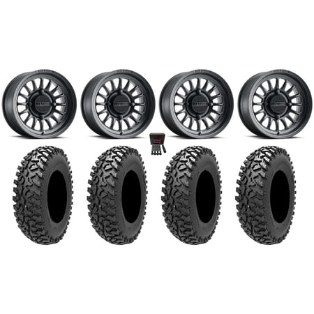 This Wheel and Tire Kit Includes: (4) System 3 ST-4 14×7 ATV/UTV Wheels – Gloss Black (4/110) 4+3 [14S3-4110] (4) EFX Moto MTC (6ply) ATV Tires [30×10-14] (1) Gorilla 10mm x 1.25 Lug Kit & Valve Stems – Chrome [K4CS-10125GR] (4) Tires Mount on ATV/UTV Wheels These Wheels will fit the following machines: Honda: Rancher 420 IRS (2015-2024) Rincon 650 (2003-2005) Rincon 680 (2006-2023) Kawasaki: Brute Force 650 IRS (2006-2013) Brute Force 750 (2005-2023) Suzuki: King Quad 450 (2007-2010) King Quad 500 (2009-2023) King Quad 700 (2005-2007) King Quad 750 (2008-2023) Yamaha: Grizzly 350 (2007-2021) Grizzly 400 (2007-2008) Grizzly 450 (2007-2016) Grizzly 550 (2009-2015) Grizzly 660 (2002-2008) Grizzly 700 (2007-2024) Kodiak 700 (2017-2024) Rhino 450 (2006-2009) Rhino 660 (2004-2007) Rhino 700 (2008-2013) FITMENT NOTES: If you have any questions or concerns about fitment please contact us by email or phone BEFORE you order. This listing is for these machine models with a 4×110 Bolt Pattern and 10mmx1.25 Lug Kit. Tire clearance varies by specific machine. Most machines can go at least 1 larger on the tire diameter. Fitment for other machines is available – Browse our wheel and tire kits for UTVs and ATVs. GENERAL NOTES: When you buy a set of 4 wheels OR 4 wheels & tires from us we include a Chrome Lug Kit at no additional charge ($32 Savings). Beware of other companies that do not include lug nuts & valve stems with their wheel sale some wheels require a special type of lug nut to fit into the wheel and your stock lug nuts may not work. If you wish to substitute the Chrome Lug Kit with a Black Lug Kit please contact us prior to ordering to verify availability and to ensure the change is made before the product has been packaged/shipped. We stock the majority of what we sell to ensure you get a great price and your order is shipped in a timely fashion. If you are interested in a mounted setup and don t see what you are looking for on our store please let us know. We can always package any tire we offer on any wheel we offer and they will come to your door mounted and ready to bolt on to your machine.